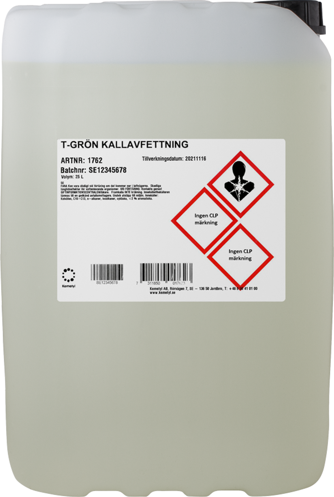 Förvaring: T-Grön® Kallavfettning har en hållbarhet i minst 36 månader. Förvaras frostfritt, på sval, torrt och väl ventilerad plats, i originalförpackningen.